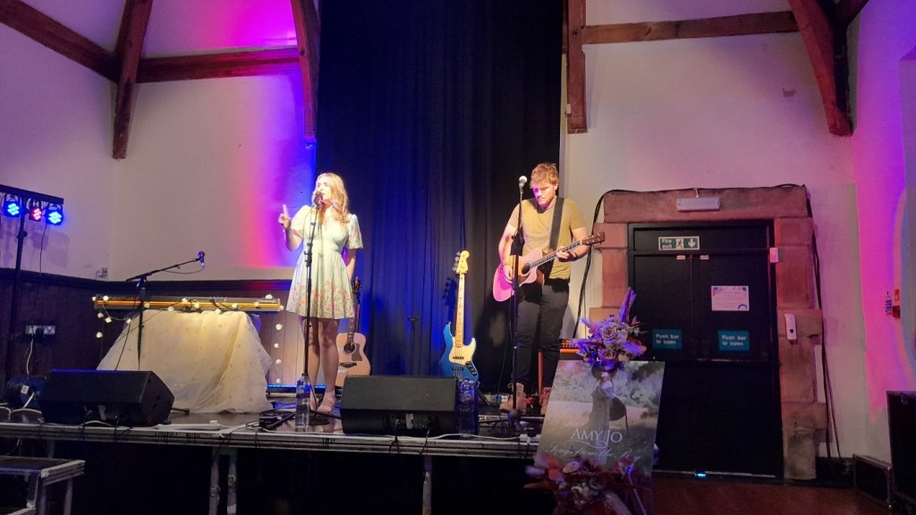For beneath the wooden beams and cream-coloured walls of this community venue, Amy-Jo exudes a professionalism that warrants a much bigger platform. She strides onto the stage with unassuming confidence; bright and breezy; and greets the audience with an effervescent smile. It seems she is in part delighted, in part overcome by the turnout, but also, in another sense, simply coming as herself. There is no façade to her performance style. The way she greets and has photos taken with those afterwards proves that. And this sense of unbroken identity is also captured in the songs that she sings. Not only in respect of her original material but her chosen covers too. She stamps her heart on each one, with a style that is inclusive of Country, Pop and Soul.